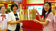 7月30日上午九點,王曉芹董事長在大連商場為“曉芹”海參專柜頒發“青年文明號”牌匾,大商“曉芹”專柜也成為大連商場第一家被授予“青年文明號”稱號的單位。