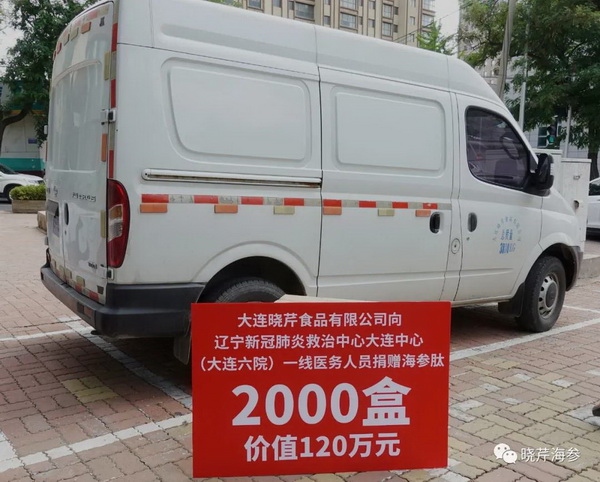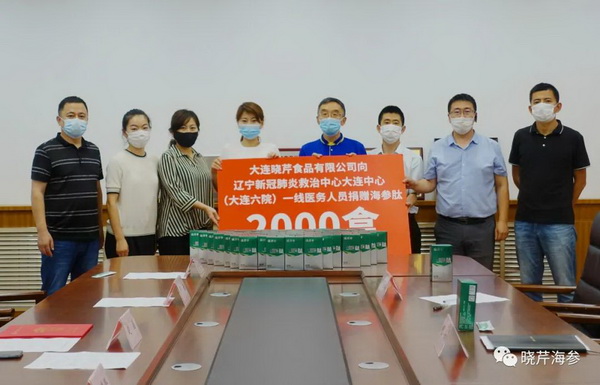 為了表達對奮斗在一線抗疫的白衣天使們,大連曉芹食品有限公司再次做出愛心之舉!7月28日,大連曉芹食品有限公司通過大連市青少年發(fā)展基金會向遼寧新冠肺炎集中救治中心大連中心(大連市第六人民醫(yī)院)一線醫(yī)務人員捐贈2000盒曉芹海參復合多肽,總價值120萬元!