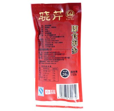 工藝簡介:以檢驗合格的大連鮮活海刺參為原料,經除臟,除沙嘴,煮制、發制、滅菌等工藝加工而成。口感筋道有彈性,開袋即食。