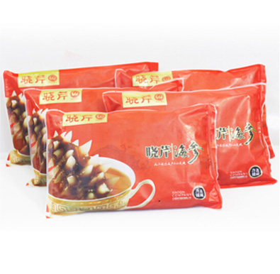 工藝簡介:以檢驗合格的大連鮮活海刺參為原料,經水煮、發制、冷凍、真空包裝等技術制作而成。參體飽滿有彈性,口感軟彈滑糯,食用便捷。
